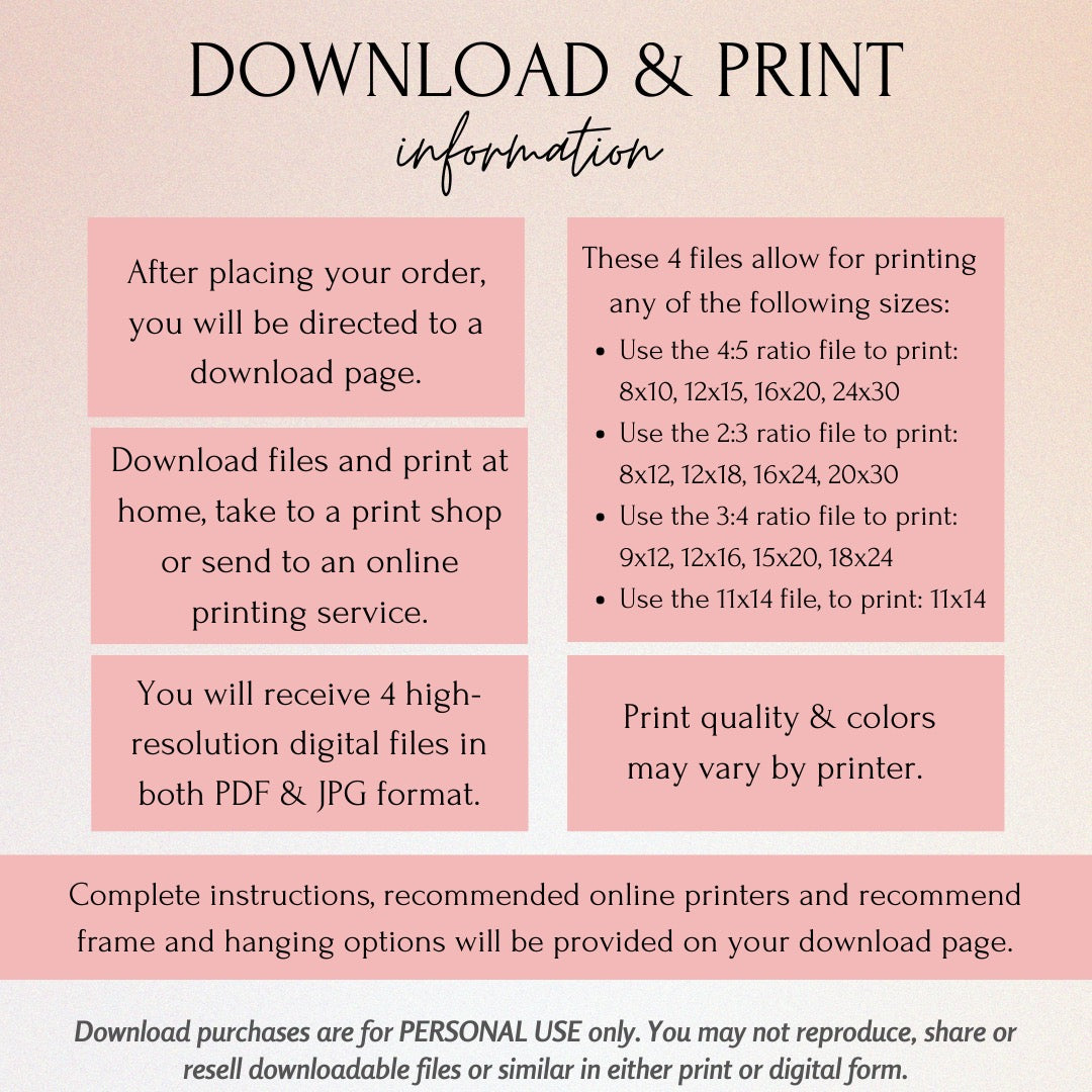 - You will receive 4 high-resolution digital files in JPG format for each print (a total of 12 files).