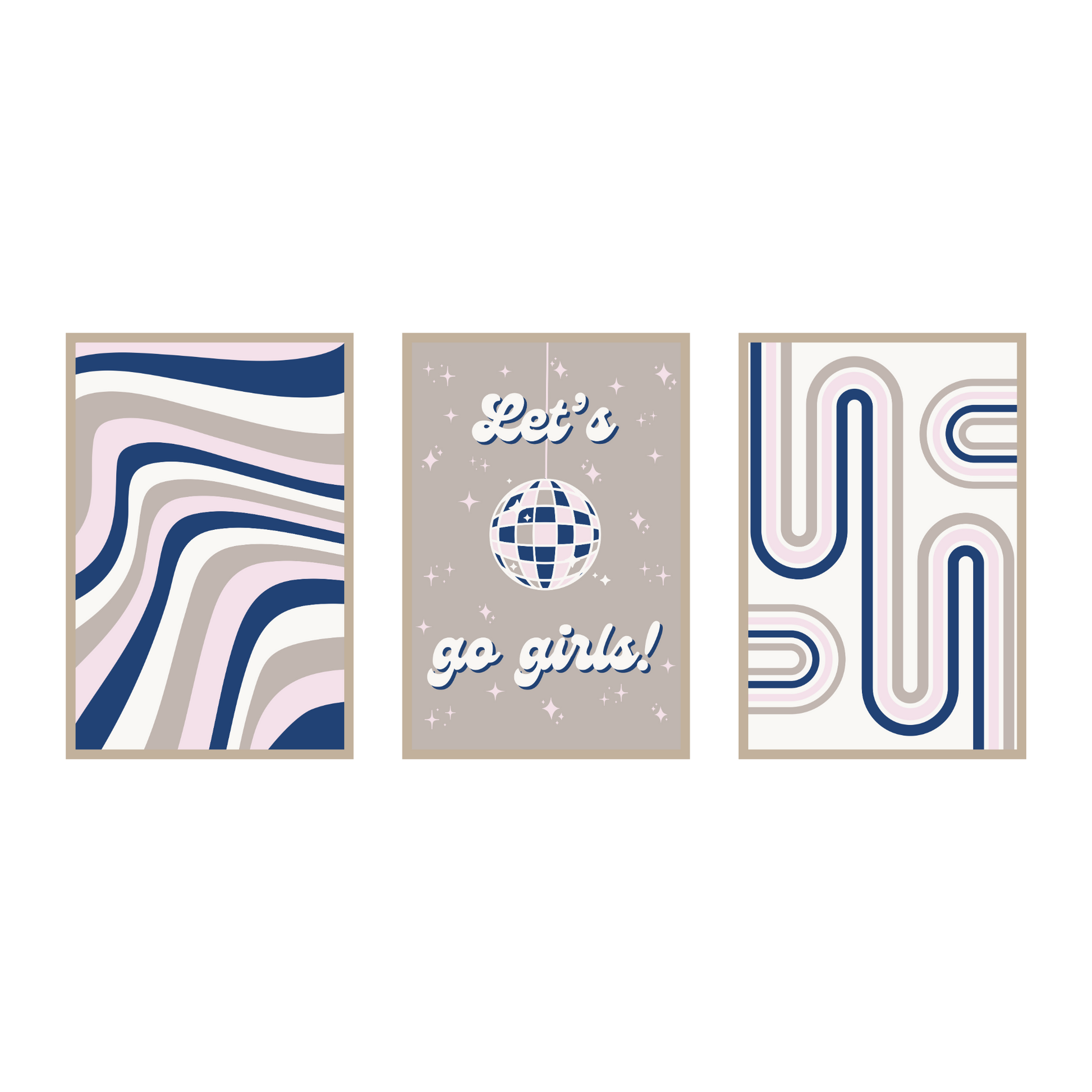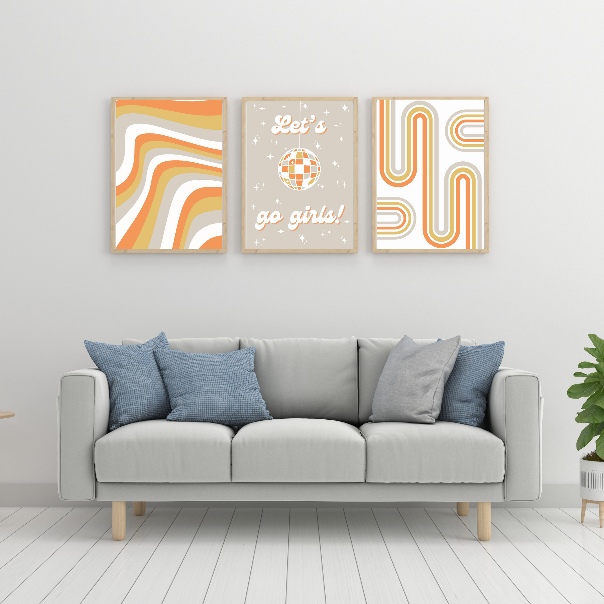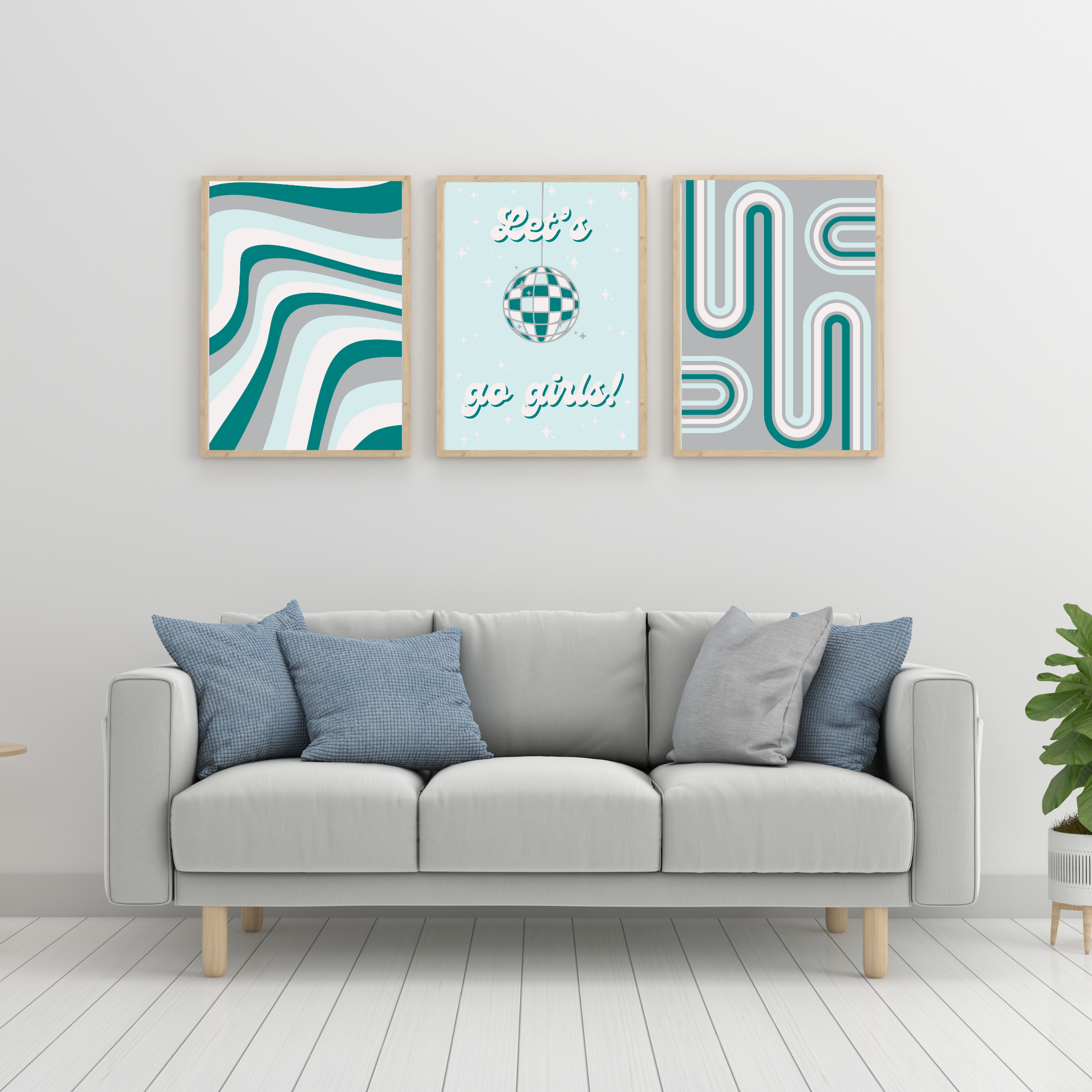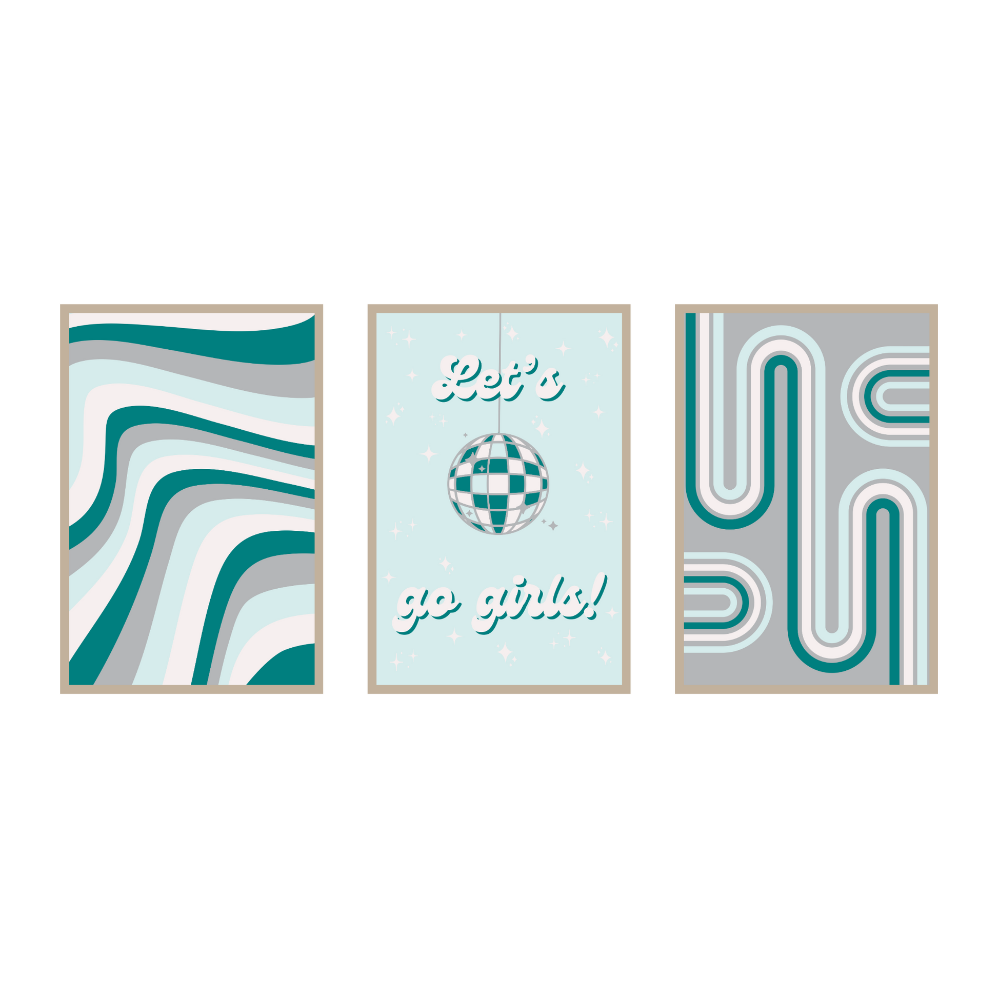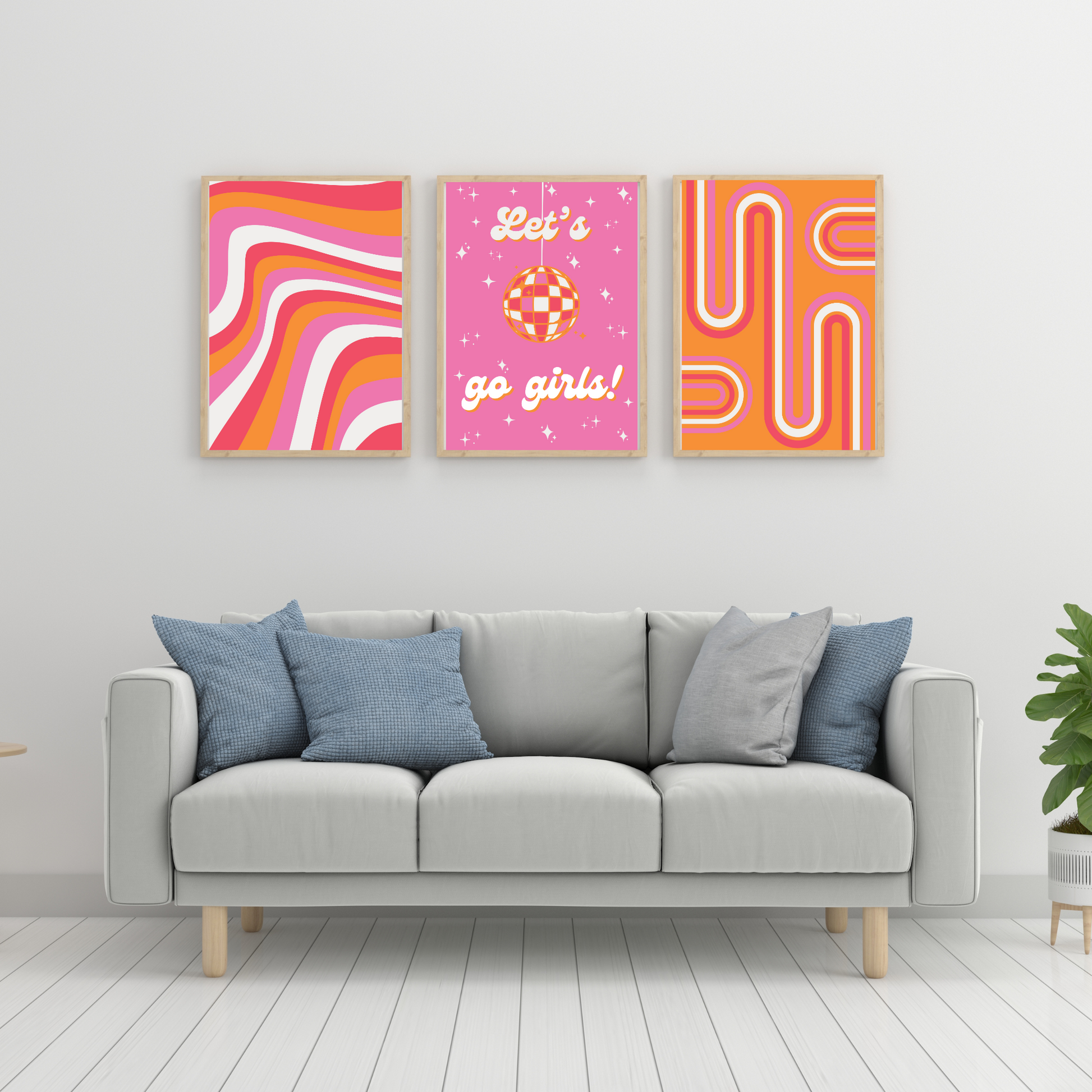 Bring the retro groovy to your room with our Let's Go Girls Wall Art Set. Inspired by the bellbottoms era and available in 14 modern color schemes.