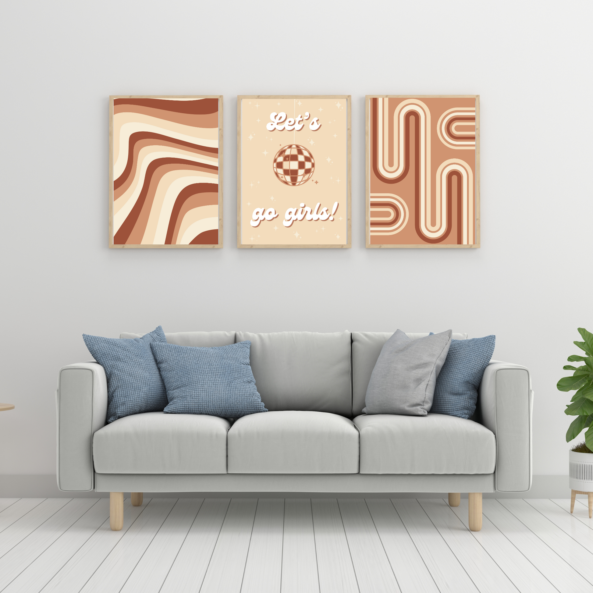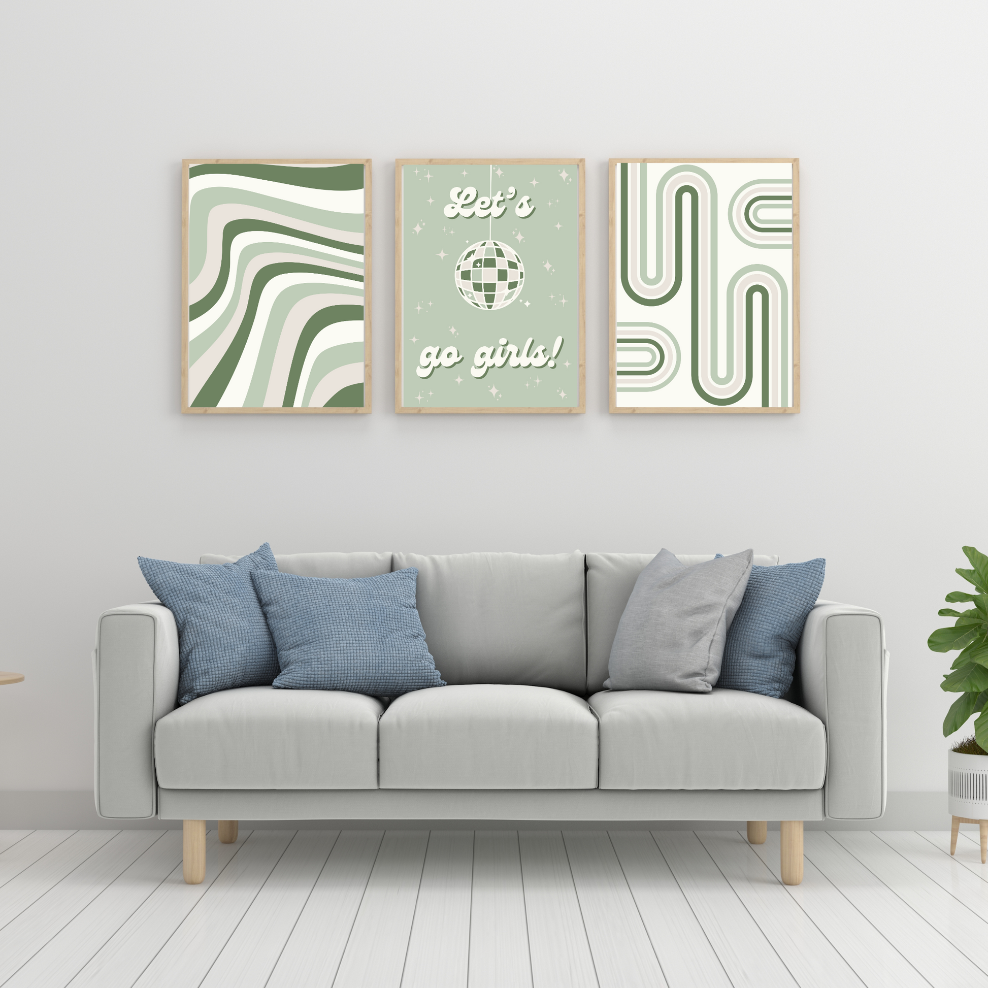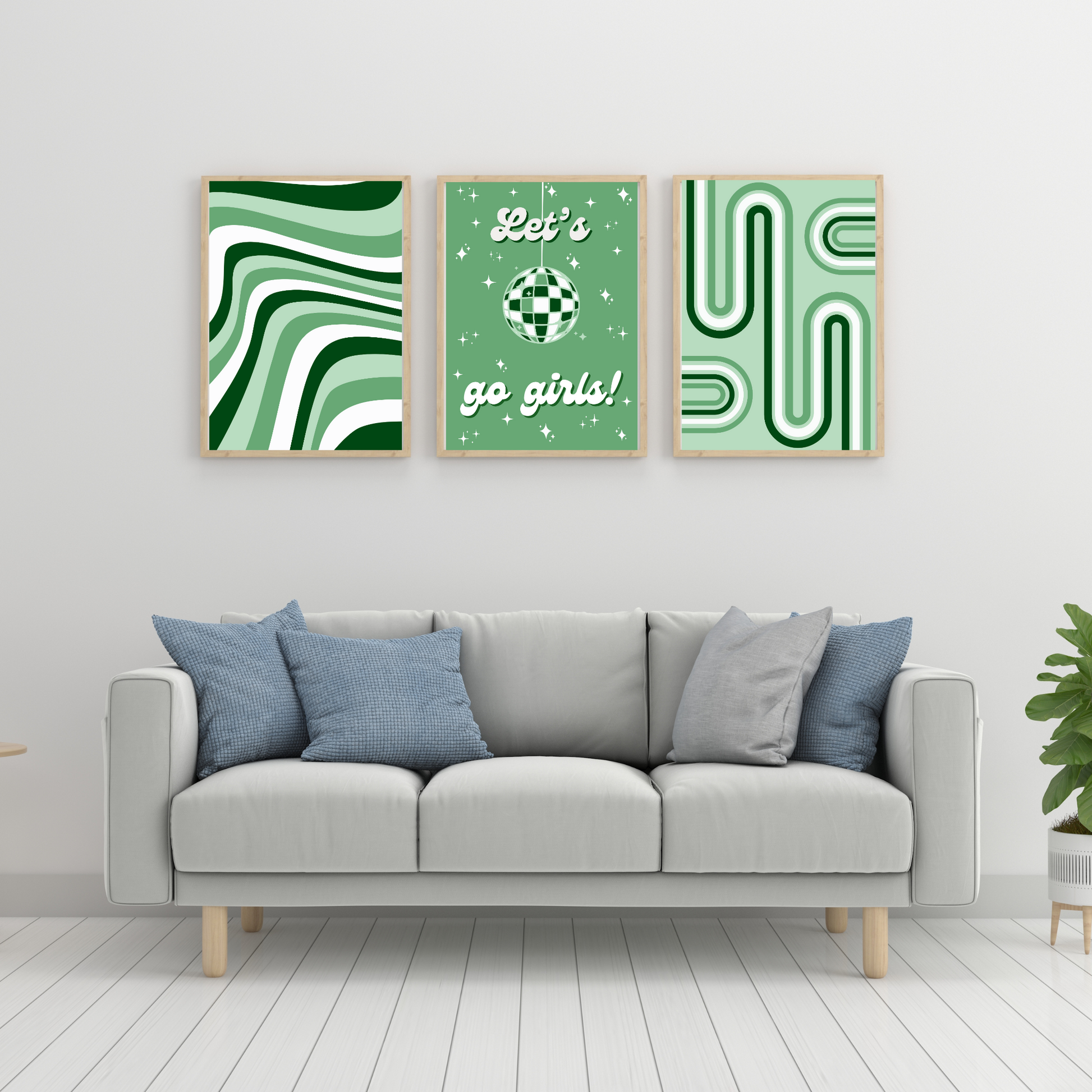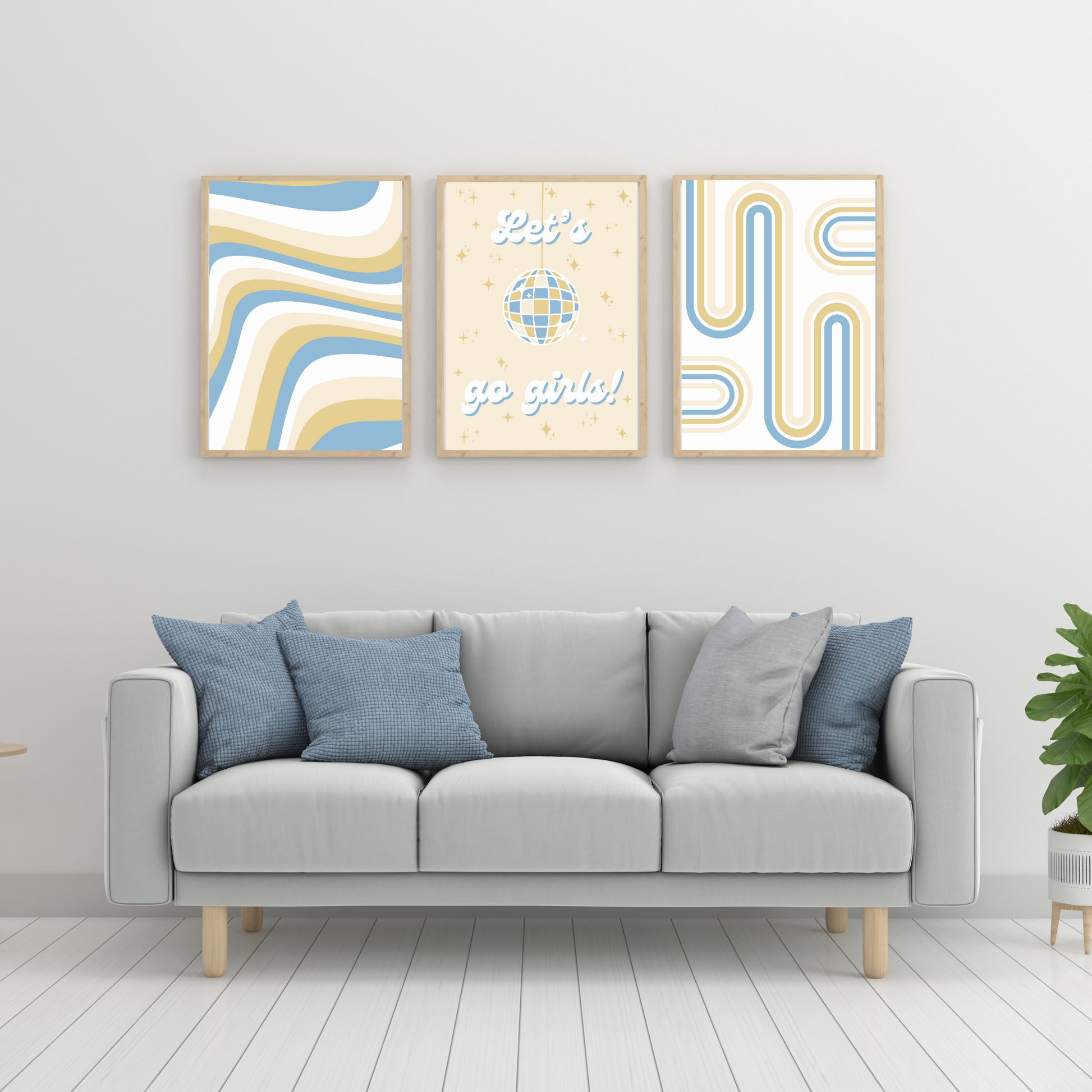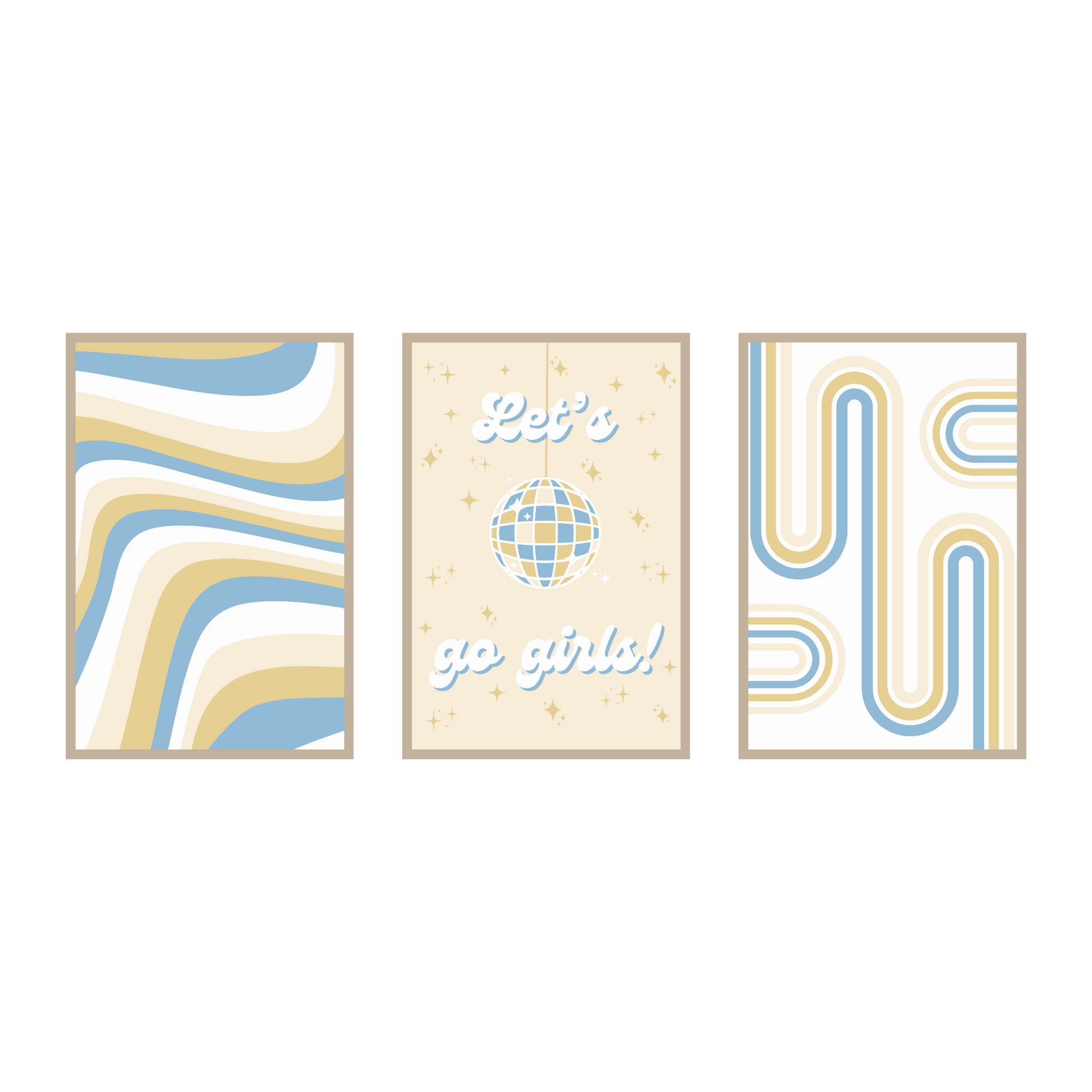 Bring the retro groovy to your room with our Let's Go Girls Wall Art Set. Inspired by the bellbottoms era and available in 14 modern color schemes.